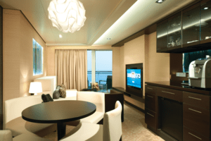 Marvel at the captain's view of the ocean in your private and luxurious Owner's Suite located in The Haven. This suite has a separate living and dining area with floor-to-ceiling views and 24-hour butler and concierge service. King-size bed with a luxury bath containing a bath tub and separate shower. Additional bedding that accommodates two and guest bathroom.