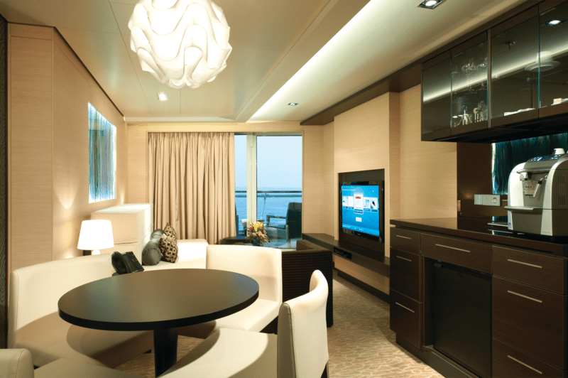 These staterooms feature tranquil spa décor and include two lower beds that convert to a queen-size bed and a single sofa bed, easy access to the adjacent Mandara Spa experience and fitness centre, as well as complimentary access to the Thermal Suite during regular Spa hours.