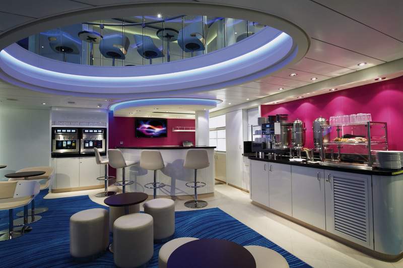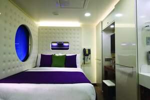 These staterooms feature a large round window and a queen-size bed. Staterooms are priced exclusively for solo travelers and include access to the private Studio Lounge.