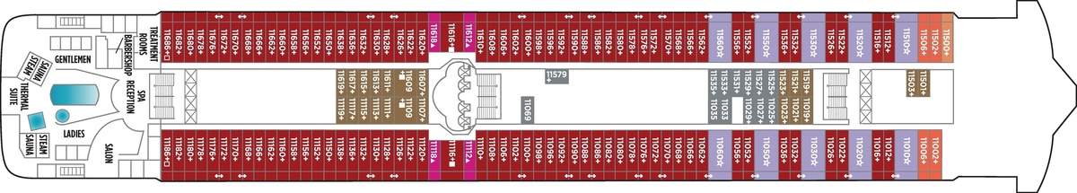 These staterooms feature a large round window and a queen-size bed. Staterooms are priced exclusively for solo travelers and include access to the private Studio Lounge.