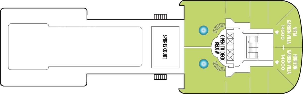 Norwegian Dawn Garden Villas accommodate up to seven guests. With three bedrooms, each with a king- or queen-size bed and luxury bath and shower, you have plenty of space to revel in. Also includes a living room, dining room as well as a private garden with hot tub, outdoor dining area and terrace to enjoy the beautiful view from. Includes butler and concierge service. Plus Garden Villas can connect so your group can experience the best together.