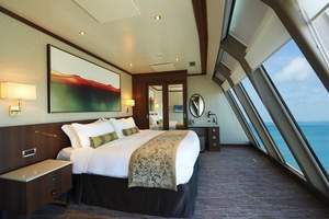 Bring the whole gang because this Suite sleeps up to six guests. It features a king-size bed separated for added privacy, double sofabed, and some also have a double murphy bed to accommodate two more. Everyone can hang out in the sitting area, and there is a luxury bath with shower. Butler and concierge included. Please note: This stateroom has floor to ceiling windows, no balcony.