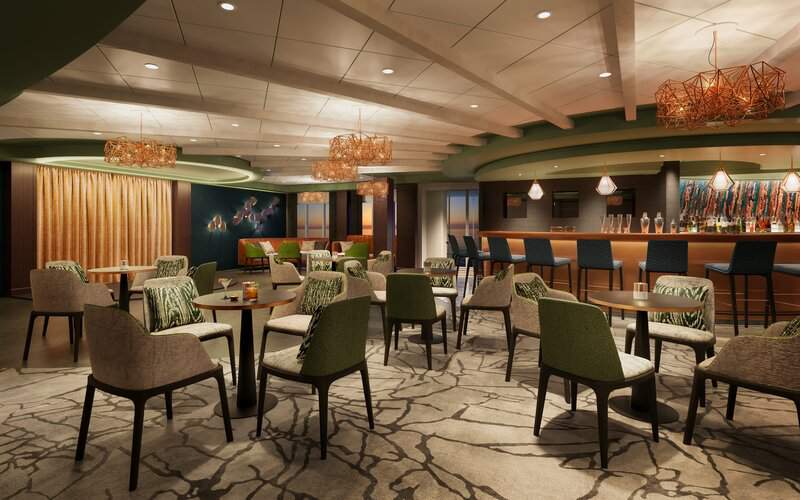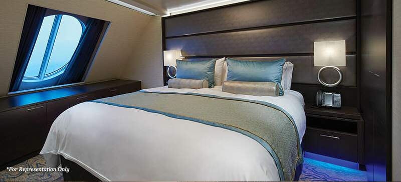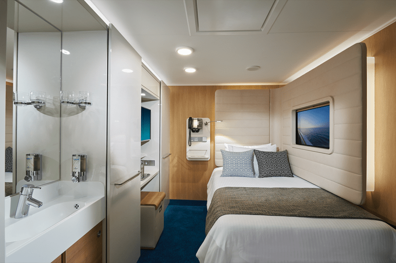 These staterooms feature a large round window and a queen-size bed. Staterooms are priced exclusively for solo travelers and include access to the private Studio Lounge.
