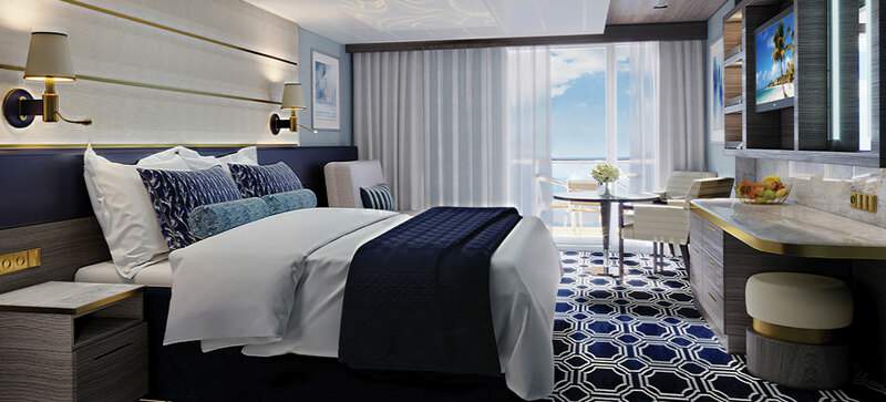These spacious staterooms include a queen-size bed, sitting area and floor-to-ceiling glass doors that open onto a private balcony. Staterooms are priced exclusively for solo travelers and include access to the private Studio Lounge.