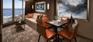 Total pampering awaits with features like a private balcony, king-size bed, whirlpool tub, soothing décor and a sitting area with a vanity. This penthouse suite is located near the aft of the ship and includes access to The Haven and all its premium amenities.