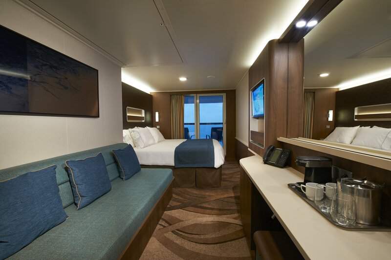 These staterooms offer incredible views from a larger balcony, two lower beds that convert to a queen-size bed and additional bedding to sleep one or two more. Some can connect for even more options.