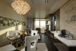 With access to The Haven, these Penthouses feature a king-size bed plus dining and sitting areas. They offer an unforgettable view from the aft-facing, private balcony. Plus some can connect to other staterooms for even more space. (Sleeps up to four)
