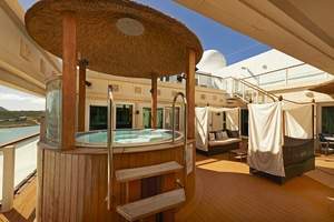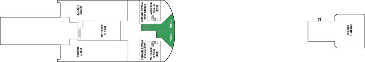 These Norwegian Gem amazing Villas sleep up to eight with three separate bedrooms, each with a king- or queen-size bed and luxury bath. With a living room, dining room and incredible private garden with hot tub, you will have more than enough space to spread out and unwind. You'll also have access to the private courtyard area. Includes butler and concierge service.