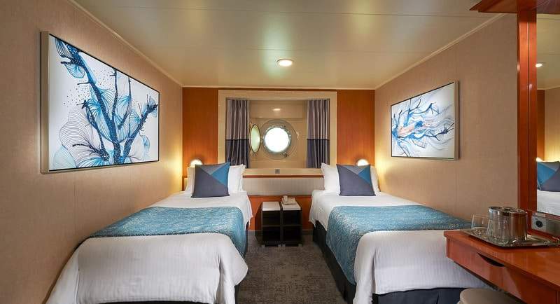 These staterooms feature a large round window and a queen-size bed. Staterooms are priced exclusively for solo travelers.