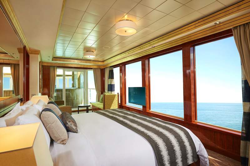 These spacious staterooms include a queen-size bed, sitting area and floor-to-ceiling glass doors that open onto a private balcony. Staterooms are priced exclusively for solo travelers.
