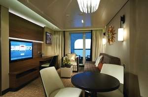 Total pampering awaits with features like a private balcony, king-size bed, whirlpool tub, soothing décor and a sitting area with a vanity. This penthouse suite is located near the front of the ship and includes access to The Haven and all its premium amenities.