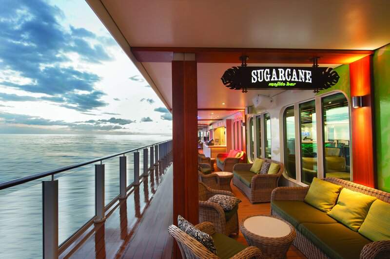 These spacious staterooms include a queen-size bed, sitting area and floor-to-ceiling glass doors that open onto a private balcony. Staterooms are priced exclusively for solo travelers and include access to the private Studio Lounge.