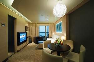 Get a birds-eye-view of the amazing vistas ahead from your floor-to-ceiling windows and the serenity of your private balcony. Desirably located forward on the corners of decks 9-13, these penthouses have exclusive key card access to The Haven Courtyard area, restaurant and lounge and 24-hour butler and concierge service. Featuring a king-size bed, luxury bath with bathtub and separate shower, living area with single sofa bed, dining area.