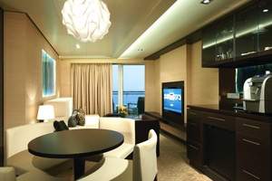 Marvel at the captain's view of the ocean in your private and luxurious Owner's Suite located in The Haven. This suite has a separate living and dining area with floor-to-ceiling windows and 24-hour butler and concierge service. King-size bed with a luxury bath containing a bath tub and separate shower. Additional bedding that accommodates two and guest bathroom.
