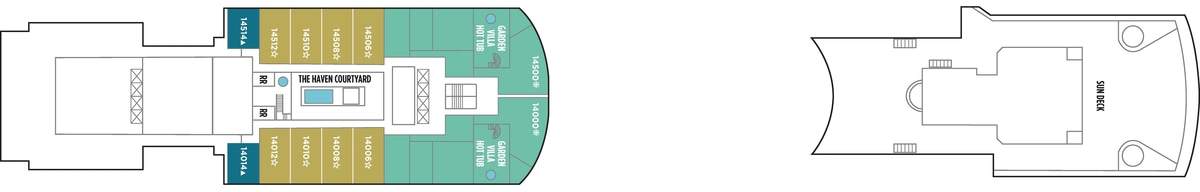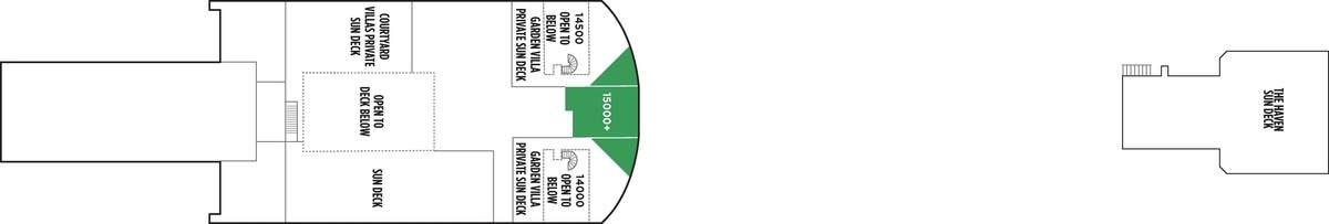Located at the top of the ship, The Haven features the most luxurious, well-appointed accommodations on board. Enjoy 24-hour butler service, concierge service and private sundeck.