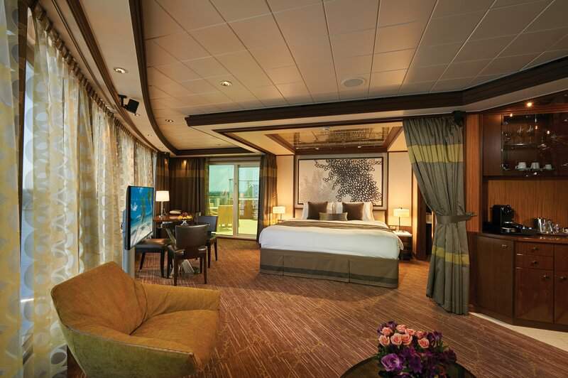 These Owner's Suites are a truly luxurious way for you to get away. Includes a separate bedroom with a king-size bed and luxury bath with separate shower, in addition to the living room, dining room and large private balconies with incredible views. Sleeps up to four and guests receive access to the private courtyard area. They also can connect to a Penthouse or Balcony stateroom so you can spread out even more. Includes butler and concierge service.