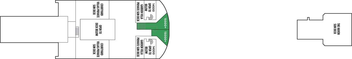 Located at the top of the ship, The Haven features the most luxurious, well-appointed accommodations on board. Enjoy 24-hour butler service, concierge service and private sundeck.