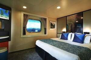 Experience stylish decor in a comfortable oceanview stateroom. All come with nice, smart touches enhanced by a large picture window with clear views of the sea.