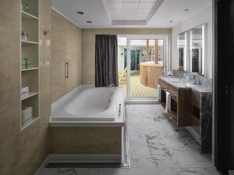 These amazing Norwegian Jewel Villas sleep up to eight with three separate bedrooms, each with a king- or queen-size bed and luxury bath. With a living room, dining room and incredible private garden with hot tub, you will have more than enough space to spread out and unwind. You'll also have access to the private courtyard area. Includes butler and concierge service.