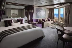 These Owner's Suites are a truly luxurious way for you to get away. Includes a separate bedroom with a king-size bed and luxury bath with separate shower, in addition to the living room, dining room and large private balconies with incredible views. Sleeps up to four and guests receive access to the private courtyard area. These suites also can connect to a Balcony stateroom, perfect when traveling with family or friends. Includes butler and concierge service.
