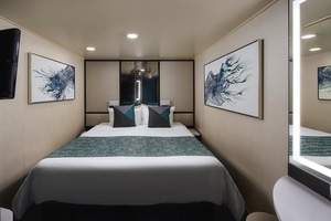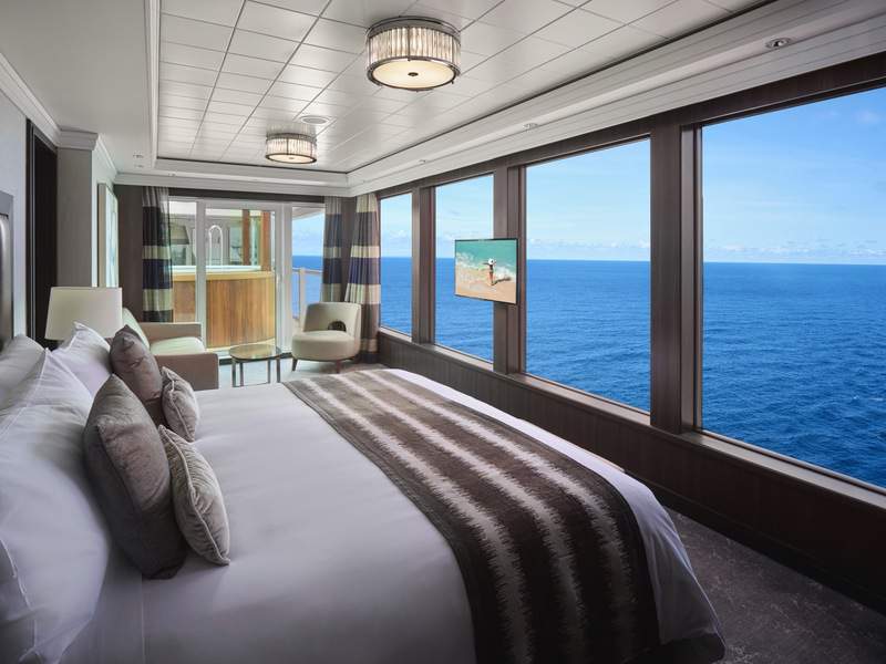 These staterooms feature a large round window and a queen-size bed. Staterooms are priced exclusively for solo travelers and include access to the private Studio Lounge.