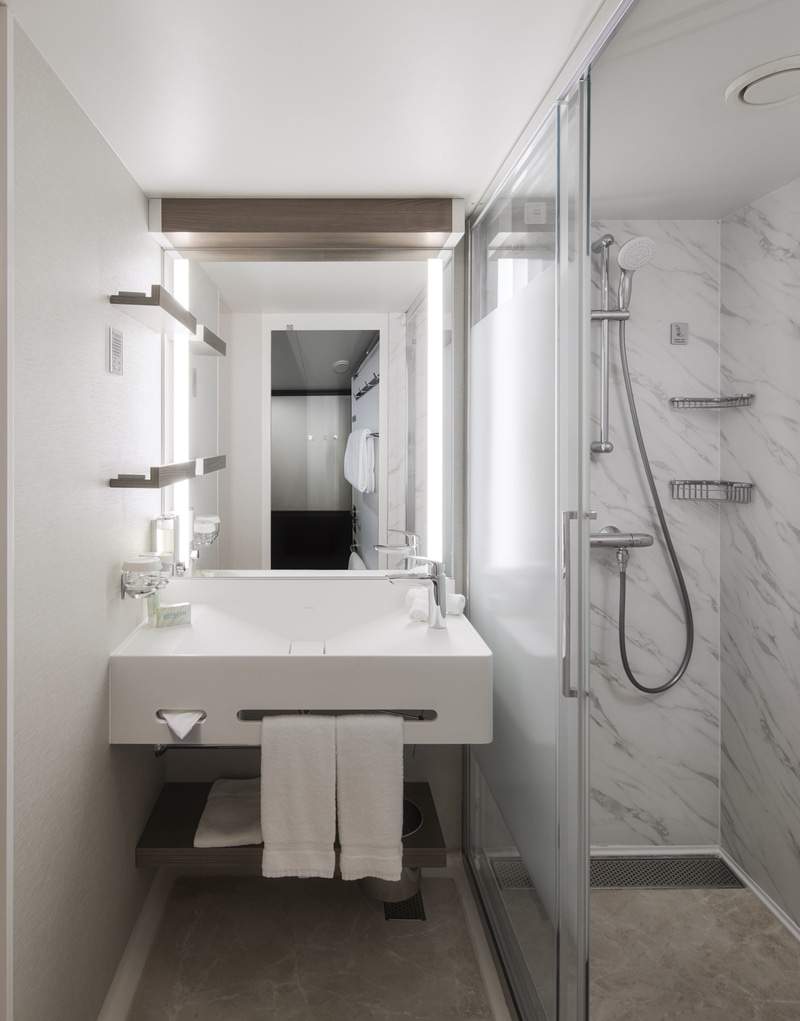 Balcony staterooms come with two lower beds that convert into a queen-size bed, with some featuring one pullman or one single sofa-bed to accommodate an additional guest. Also includes a sitting area and floor-to-ceiling glass doors that open to a private balcony. Some can connect, a great option when travelling with family or friends.
