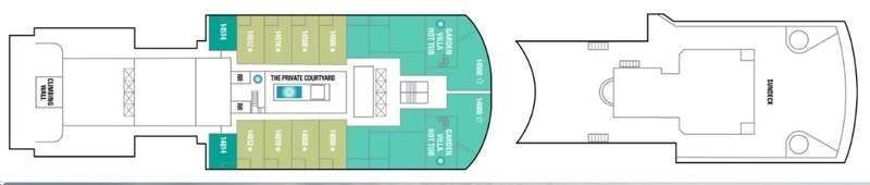 Norwegian Pearl Courtyard Penthouses make for an amazing cruising experience. Sleeps three, with a bedroom featuring a queen-size bed, luxury bath and shower and additional bedding to sleep one additional guest. Also features a living area, dining area, private balcony and access to the private courtyard area. Includes butler and concierge service.