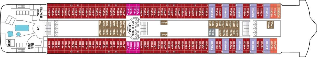 Step out onto your large, forward-facing balcony and enjoy the fresh air and magnificent views. Back inside, these Penthouses feature a queen-size bed, luxury bath with shower and bathtub, and a living and dining area. Plus concierge and butler service to fulfil all your wishes. And some can connect to an Owner's Suite so you can sail in style with family or friends. Sleeps up to three.