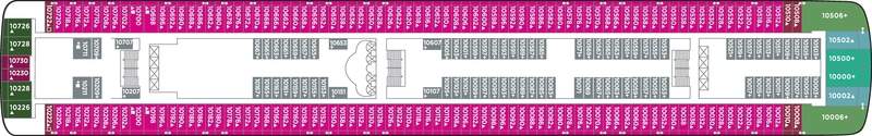 These Oceanview Staterooms have a picture window or porthole with an obstructed view and can accommodate up to four guests and includes two lower beds that convert to a queen-size bed, one pullman and one pullout. Located mid-ship, they are close to all the action.