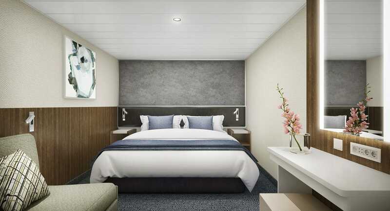 These staterooms feature a large round window and a queen-size bed. Staterooms are priced exclusively for solo travelers.