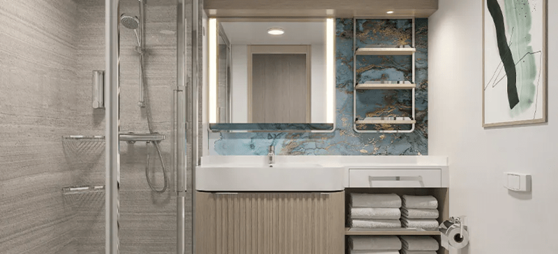 Welcome to your home at sea in some of our most spacious accommodations. Whether you want to freshen up, wind down or kick back with delicious room service, you'll have more room than ever before.