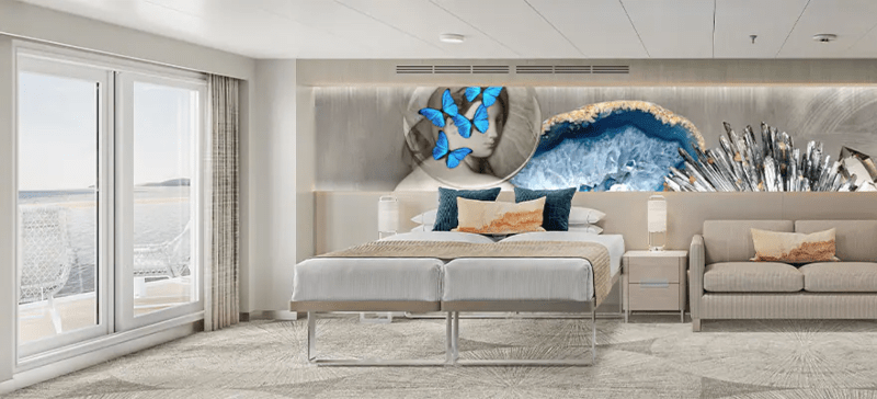 Your private paradise is ready. Relax in chic, luxurious comfort complete with floor-to-ceiling glass doors to let the outside in. Or take in vista after glorious vista from one of the most spacious balconies at sea.