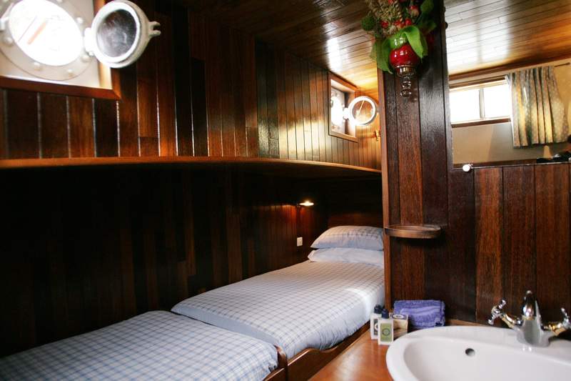 Nymphea has three comfortable cabins, two twin staterooms and one twin or double stateroom, all with air conditioning and en-suite facilities. Six bikes are always available for you to enjoy rides along towpaths and trails. Her crew of Captain and Chef/Housekeeper are most knowledgeable about the history in this beautiful area and are excellent hosts for your luxury cruise.