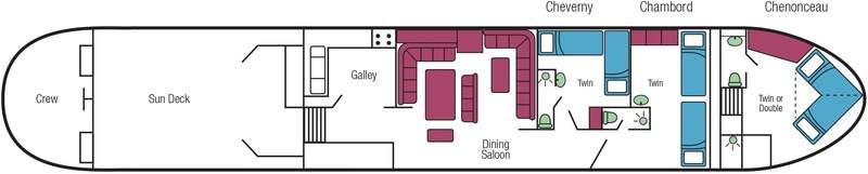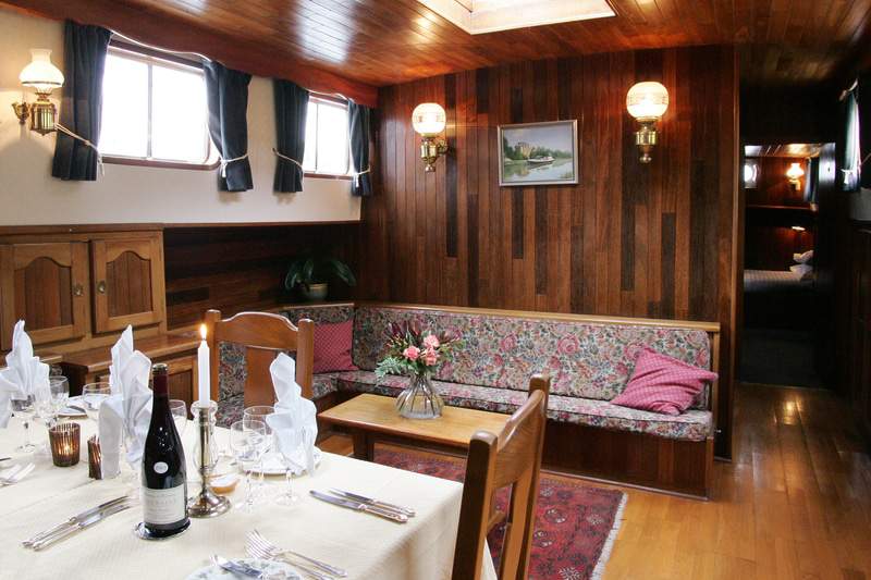 The 6 passenger Nymphea is a classic Dutch design with shallow draft and is ideal for navigating the incredibly beautiful yet somewhat sandy reaches of the river Cher in the Loire valley. Refitted throughout, her traditional ship interior features a warm classic decor of rich varnished hardwoods, stained glass and a welcoming country house atmosphere.