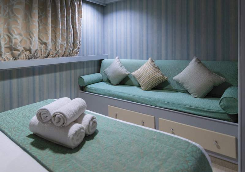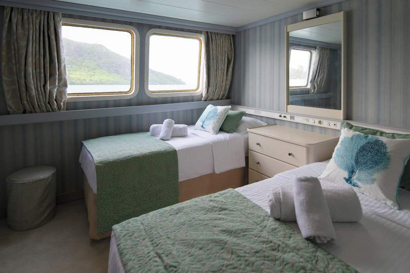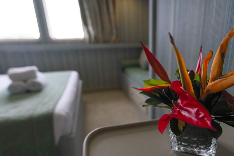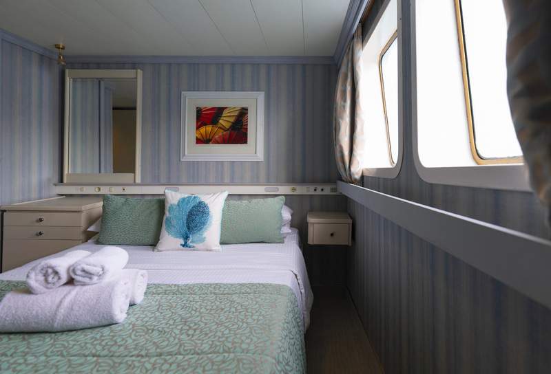 Retreat to your cabin sanctuary all offering windows or portholes connecting you with Mother Nature’s wonders.