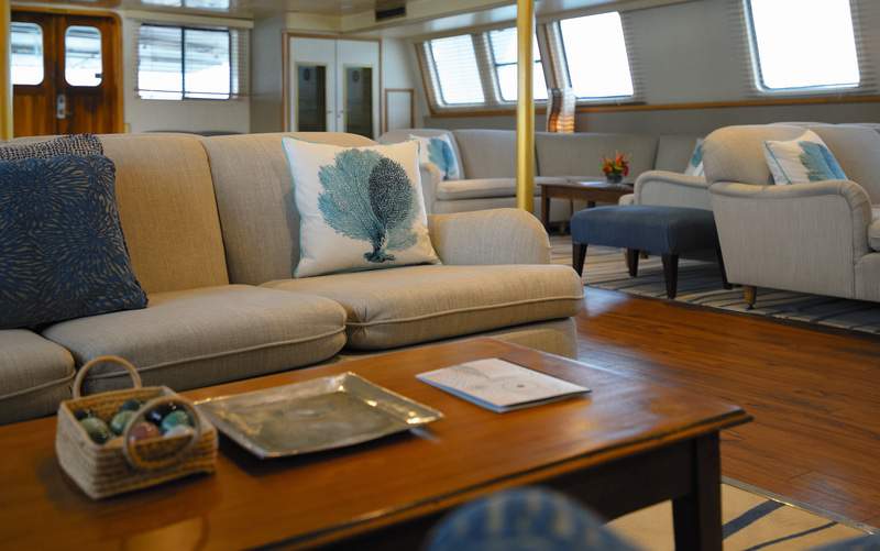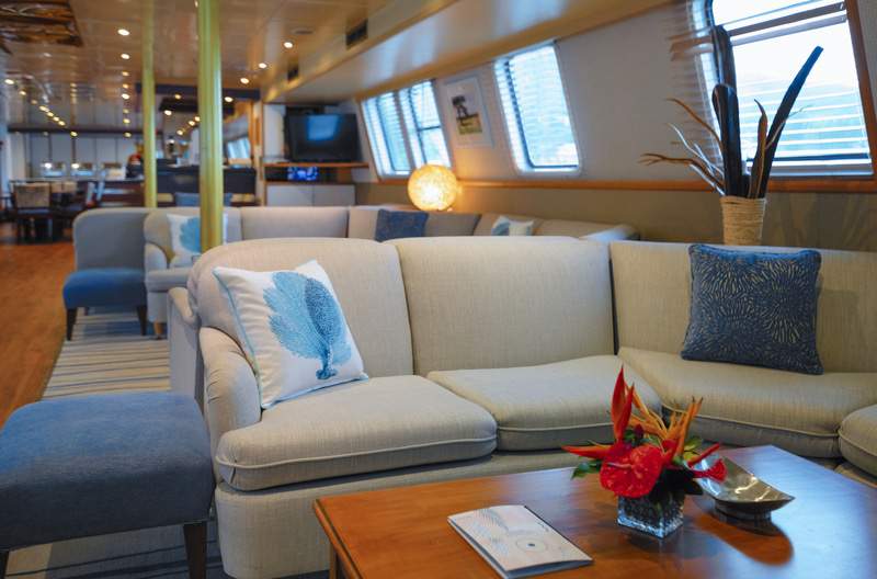 Mingle with likeminded travellers in our public areas, enjoy a moment to yourself in our ample deck space, or retreat to one of our 21 ocean view cabin sanctuaries all offering windows connecting you with Mother Nature’s wonders. Pegasos’ experienced crew of 18 is trained with hospitality at heart to pamper her guests and guarantee the ultimate home away from home experience.