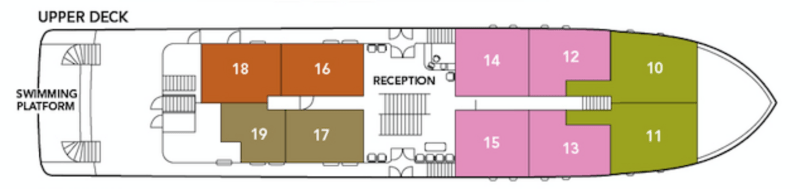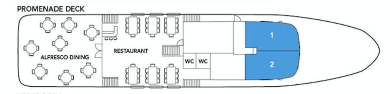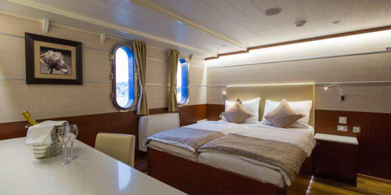 The Princess Eleganza's 19 cabins are finished to the highest standard, and all offer a safe, air conditioning, hairdryer and TV. Each cabin also has an ensuite bathroom with shower and toilet.