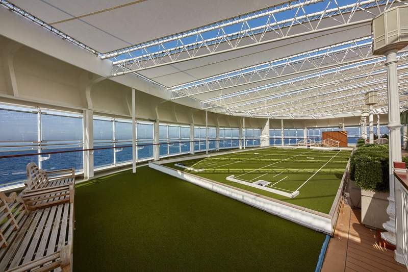When the warm weather entices you onto the spacious Games Deck you’ll notice a definite English country garden ambience, with the gentle clunk of croquet balls in the welcome shade of its canopy. The games on offer include traditional cruise favourites such as shuffle-board, bowls, quoits, and paddle tennis, with occasional tournaments also taking place.