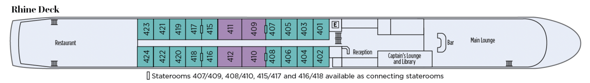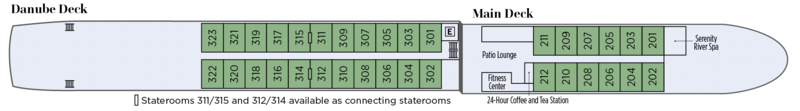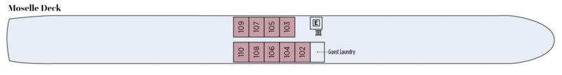 | Launch year | Refit year | Language | Gross tonnage | Length | Width | Currency | Speed | Capacity | Crew count | Deck count | Cabin count | Large cabin count | Wheelchair cabin count | Electrical plugs |