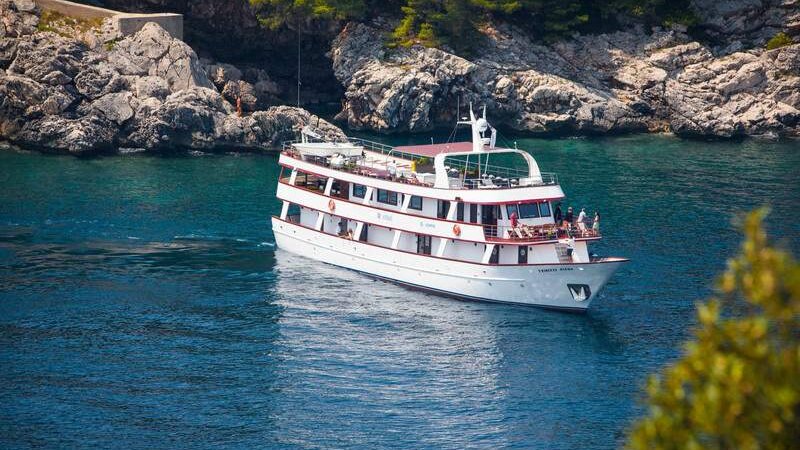 The M/S Romantic Star, �five star vessel was built in 2016 with latest state-of-the-art equipment and amenities. Maximum capacity is 38 passengers in 18 twin or double beds cabins, guaranteeing an intimate setting for all guests. All cabins have been built by up-to-date standards. Each, fully equipped with A/C, LCD TV, safe deposit box, �re alarm, internal communication system between room and bar. Bathrooms are equipped with toilet, shower, wash basin, hair dryer, slippers, bathrobe, and for added convenience cosmetic package. All cabins are sound-proof and each cabin comes with the �re-proof doors. A fully air-conditioned upper deck dining room can accommodate all passengers at once, yet o�er a great degree of privacy for each guest.