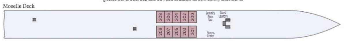 | Launch year | Refit year | Language | Gross tonnage | Length | Width | Currency | Capacity | Crew count | Deck count | Cabin count | Large cabin count | Wheelchair cabin count | Electrical plugs |