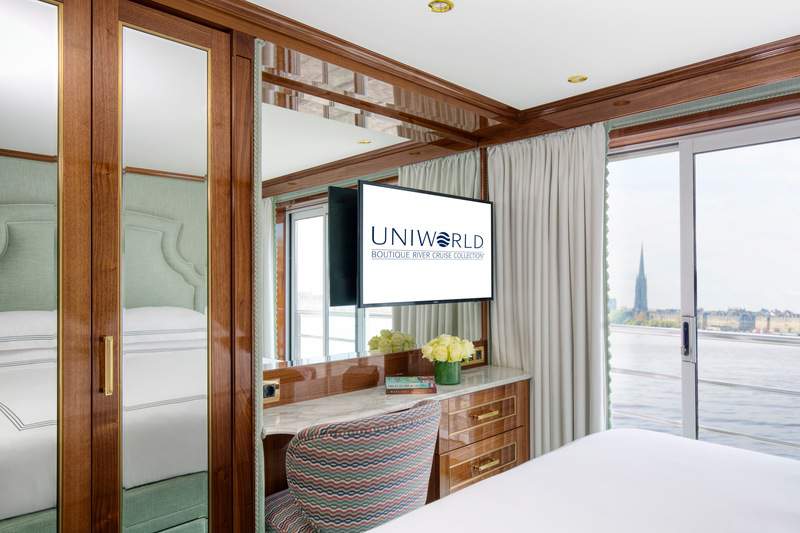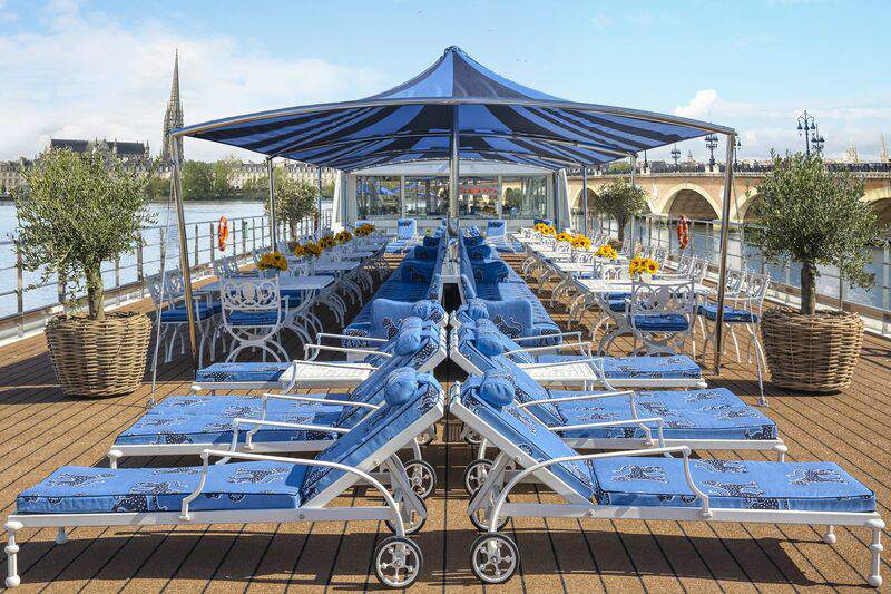 We are excited to welcome one of our newest Super Ships to the rivers of Bordeaux—the S.S. Bon Voyage— designed to immerse guests in French culture, art and wine, from its stunning lobby clad in polished wood, subtle brass details and hand-crafted balustrade, to the stylish emerald tones found in bar Le Salon Champagne, inspired by Yves Saint Laurent’s personal abode, Villa Majorelle.