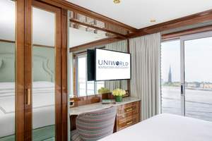 Your Uniworld stateroom is a chic yet cosy cocoon- ideally designed for a daytime catnap and full-night’s rest alike. Your bed is handcrafted by Savoir® of England bed-makers to the world’s finest hotels, including London’s legendary Savoy Hotel. Your bed is dressed in divine linens of the highest quality and topped with a fluffy duvet and you always have your choice of pillow options to ensure the most restful sleep.