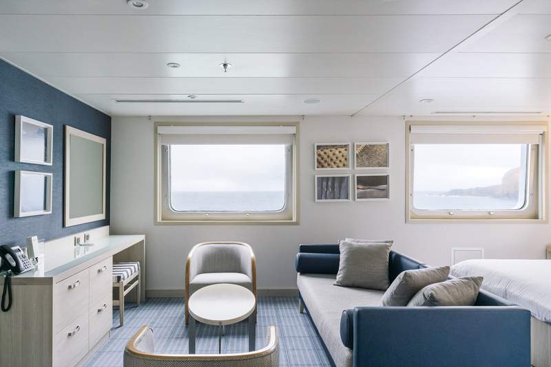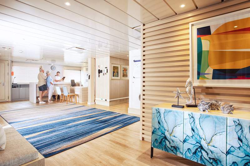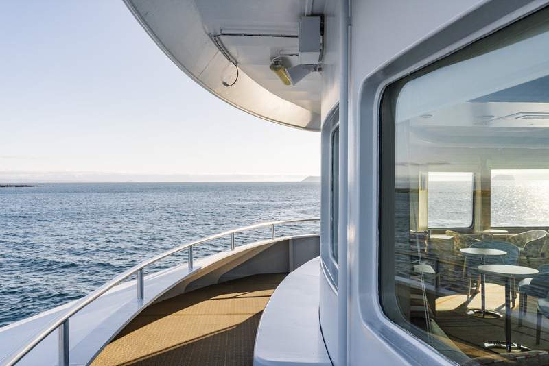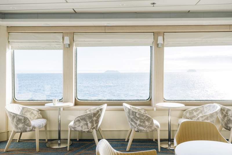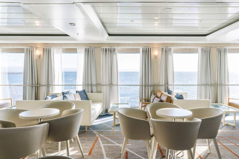 The social areas located across the MS Santa Cruz II allow travellers to converse about their passion for travel. There are multiple decks, including the Ocean, Horizon, Panorama, Expedition, and Sky Decks. Each space offers guests a comfortable seating area and an immaculate view of the nearby islands. Every social space is exquisite.