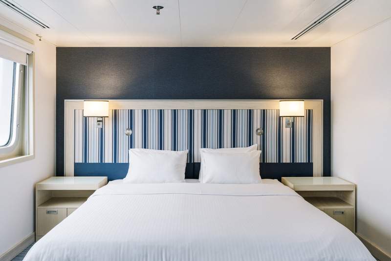Onboard the ship, there are fifty cruise cabins that provide ample space for each and every guest. Each cabin has a private bathroom. There are options available for single travelers, couples, groups and families.
