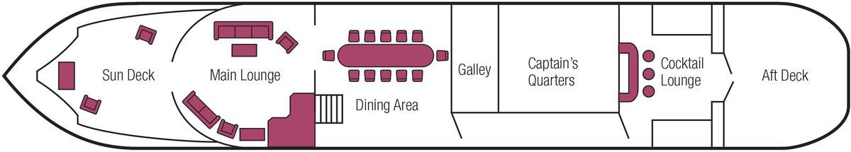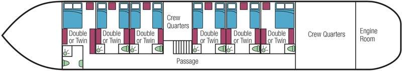 Savoir Faire features six staterooms all of which are air-conditioned and have en suite facilities. Each can be configured with twin beds or with one queen bed. Two spacious sun decks offer magnificent views of the countryside and bikes are provided for those who wish to explore further.