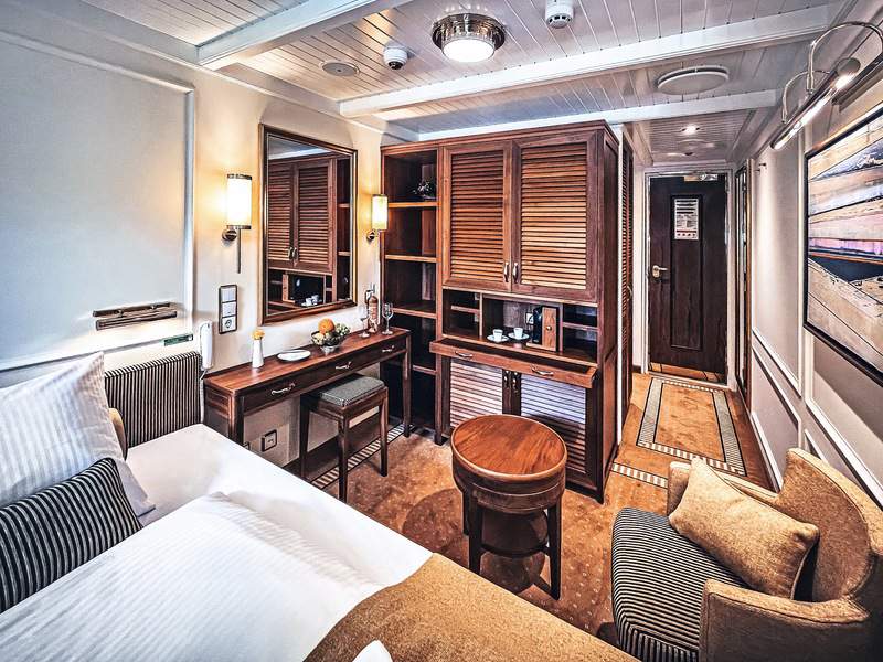 Even more comfort: of the 69 cabins from the owner suite to the superior outside cabin, almost half have balconies or windows to open.