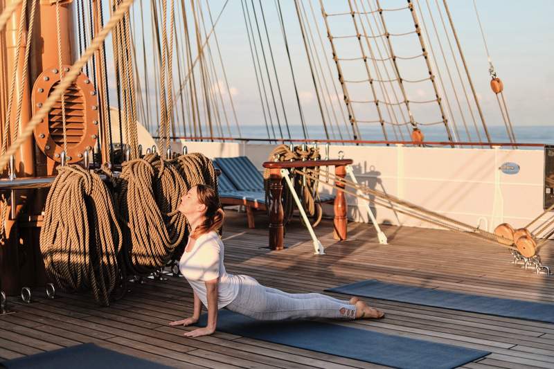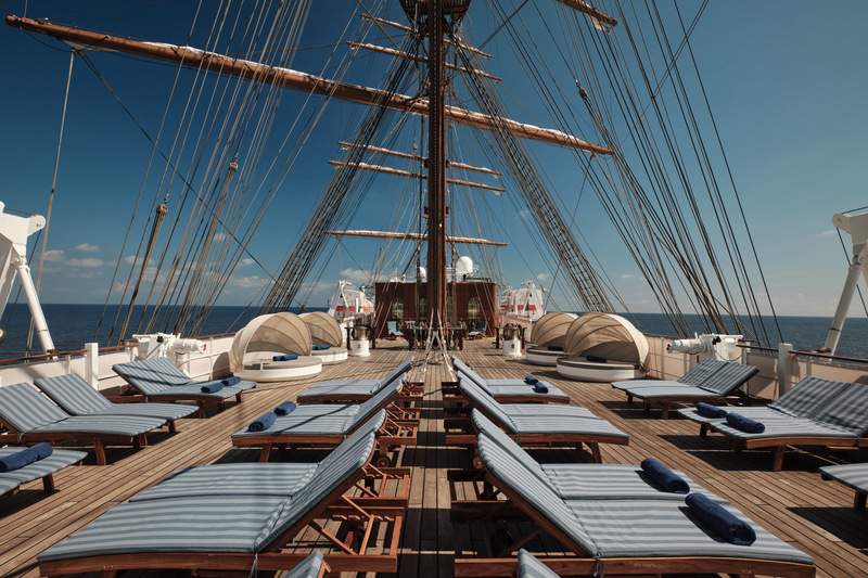 Spacious decks, a generous wellness and SPA area, fitness with sea view and much more: on board the SEA CLOUD SPIRIT, one does not only enjoy the freedom under sails.