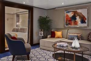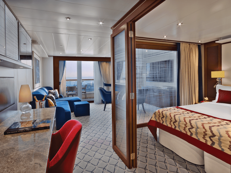 Located on Deck 8; Combine mid-ship suites 849 and 851 for suite 8491 or suites 846 and 848 for suite 8468 for a total inside space of 1,292 square feet (120 square meters) plus two verandas totalling 244 square feet (23 square meters)