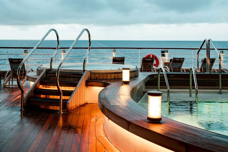 The liveliest lounge on board is the scene of daily afternoon tea service. It is a popular spot for pre-dinner drinks and dancing to live music. After dinner, the dancing music continues, and later a DJ spins dance music until late at night. Another terrace of open deck aft of The Club boasts a plunge pool and two small whirlpool spas.